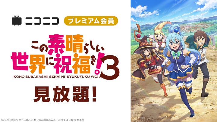 ニコニコプレミアム会員限定で、2024年春に放送される『アイドルマスター シャイニーカラーズ』や『ブルーアーカイブ The Animation』、『この素晴らしい世界に祝福を!3』などを含む計34作品が見放題となります。