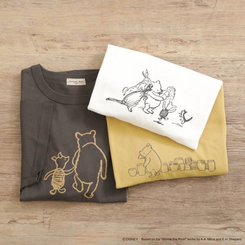 また、ehka sopoでは、プーさんをイメージしたカラフルなリンガーTシャツやバケットハットなどがラインアップされます。