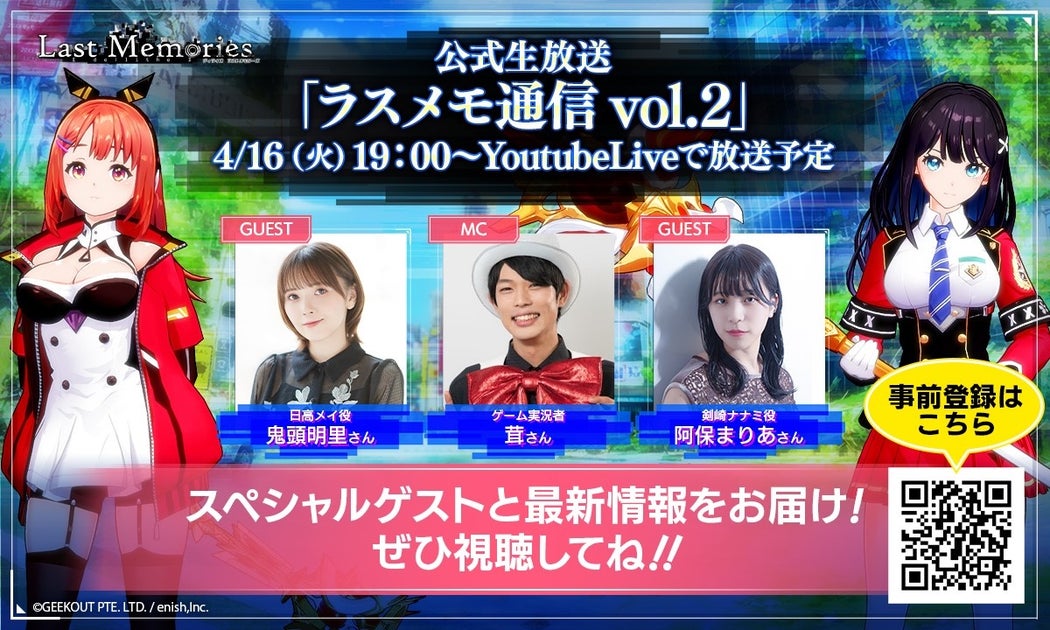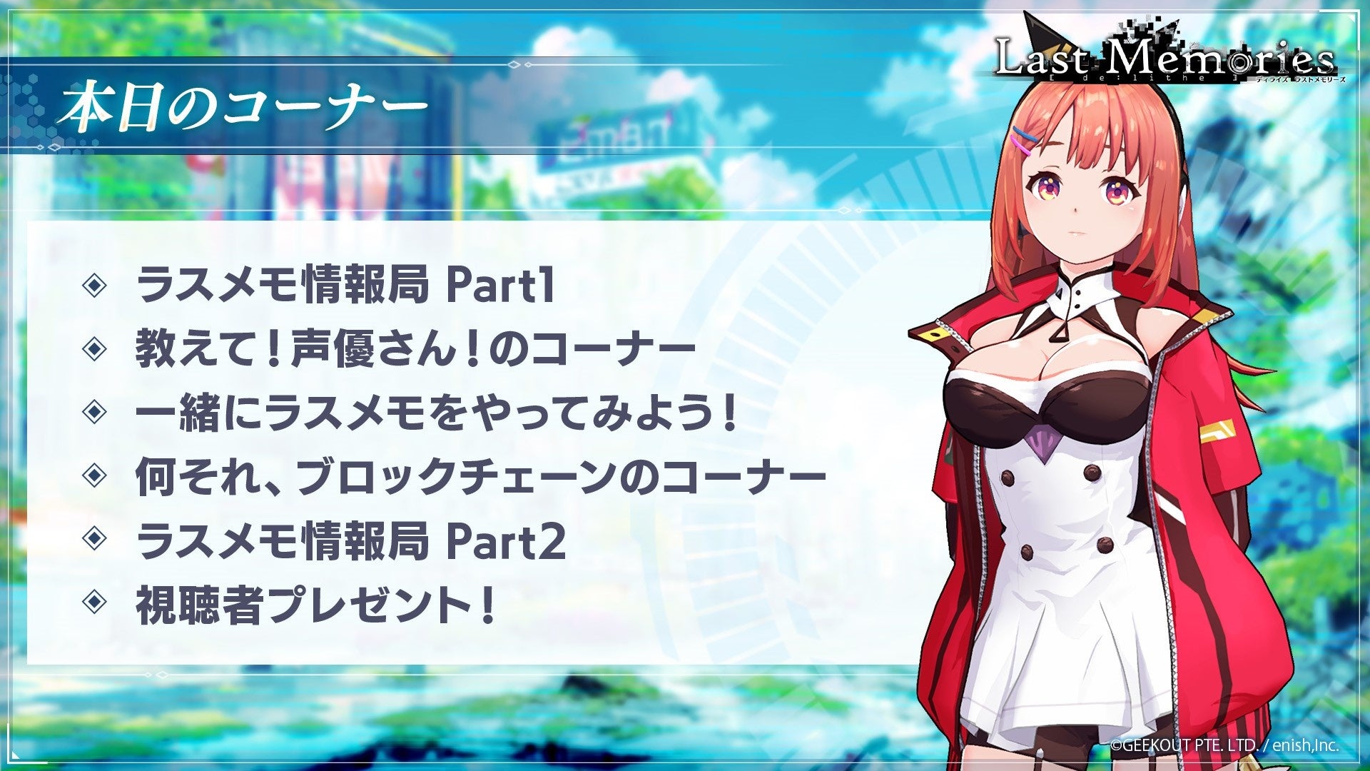 - YouTube「ラスメモ」公式チャンネルで配信予定