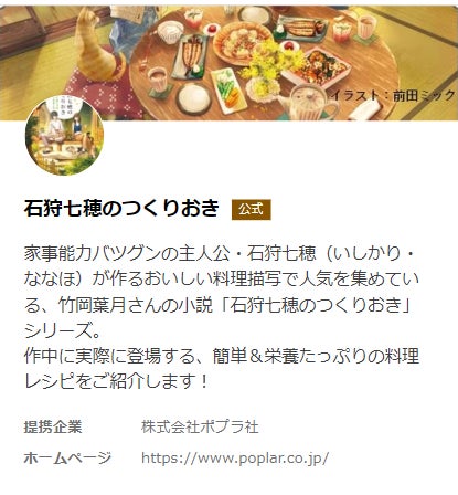 『石狩七穂のつくりおき』シリーズ第1弾も好評で、心温まる物語とレシピが楽しめます。