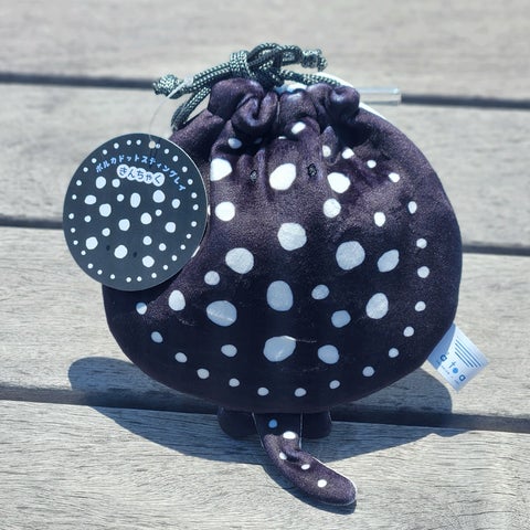 アトアの新商品『ポルカドットスティングレイ巾着』は、触り心地にこだわり、もちもちふわふわの素材で肌触り抜群です。