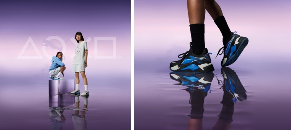- PUMA x PlayStation®コレクションは、アクティブなシルエットやアイコニックな「シェイプスロゴ」が特徴