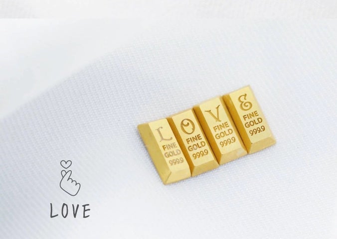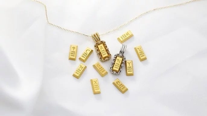 1gのかわいい純金で、アルファベット全26文字が選べ、専用ペンダントトップに入れて身に着けたり、額縁ケースに飾ったりできる。
