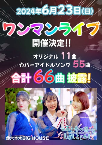 6月23日、六本木BIG HOUSEで1日66曲を歌い踊るワンマンライブを開催します。