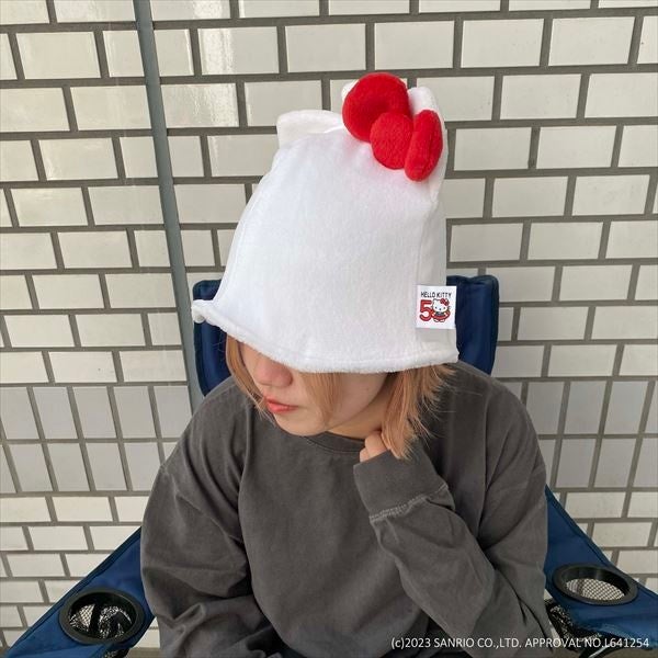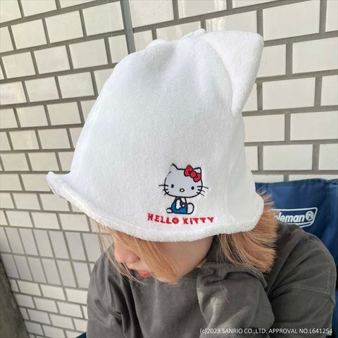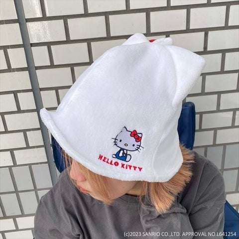 ハローキティの耳付きハットで、サウナを快適に楽しめるアイテムです。