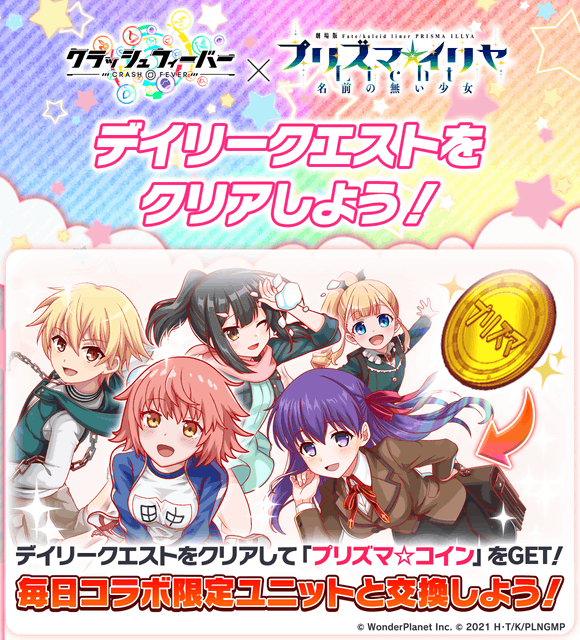 - 『クラッシュフィーバー』が『Fate/kaleid liner プリズマ☆イリヤ Licht 名前の無い少女』と再コラボ