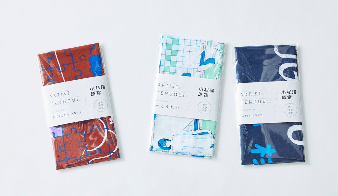 アート手拭いのコラボ企画が話題で、3人の著名アーティストが参加します。