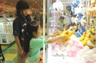 いつもはさわれないクレーンゲームのぬいぐるみをきれいに並べてみよう
