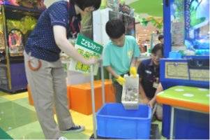 体験内容は、メダル・プライズコーナー、カウンターでの接客、お掃除など。