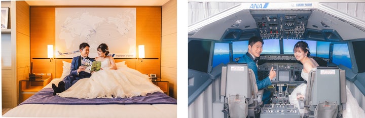 - 飛行機貸し切りで撮影可能、ワタベウェディングの衣装利用可