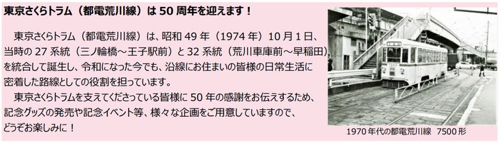 また、都電荒川線は10月1日に50周年を迎える予定で、50周年記念企画も予定されています。