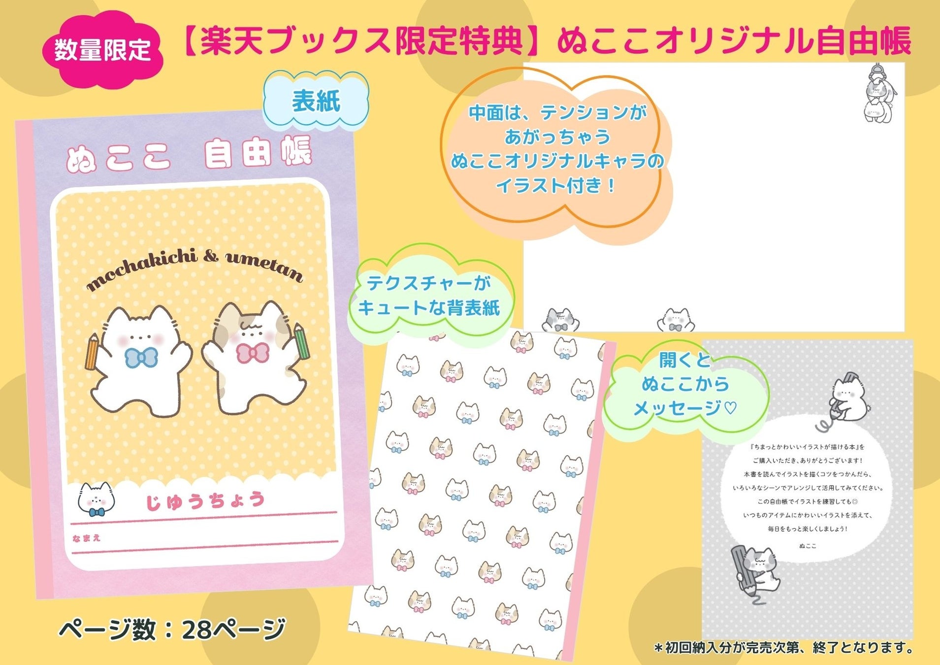 SNSで人気のイラストレーターぬここ氏の新刊「ちまっとかわいいイラストが描ける本」が、数量限定の楽天ブックス特典付きで予約受付中です。