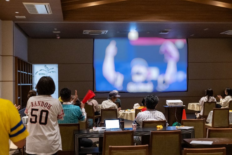 福岡の斎場で初のホークス戦パブリックビューイングが開催され、24名が参加しました。