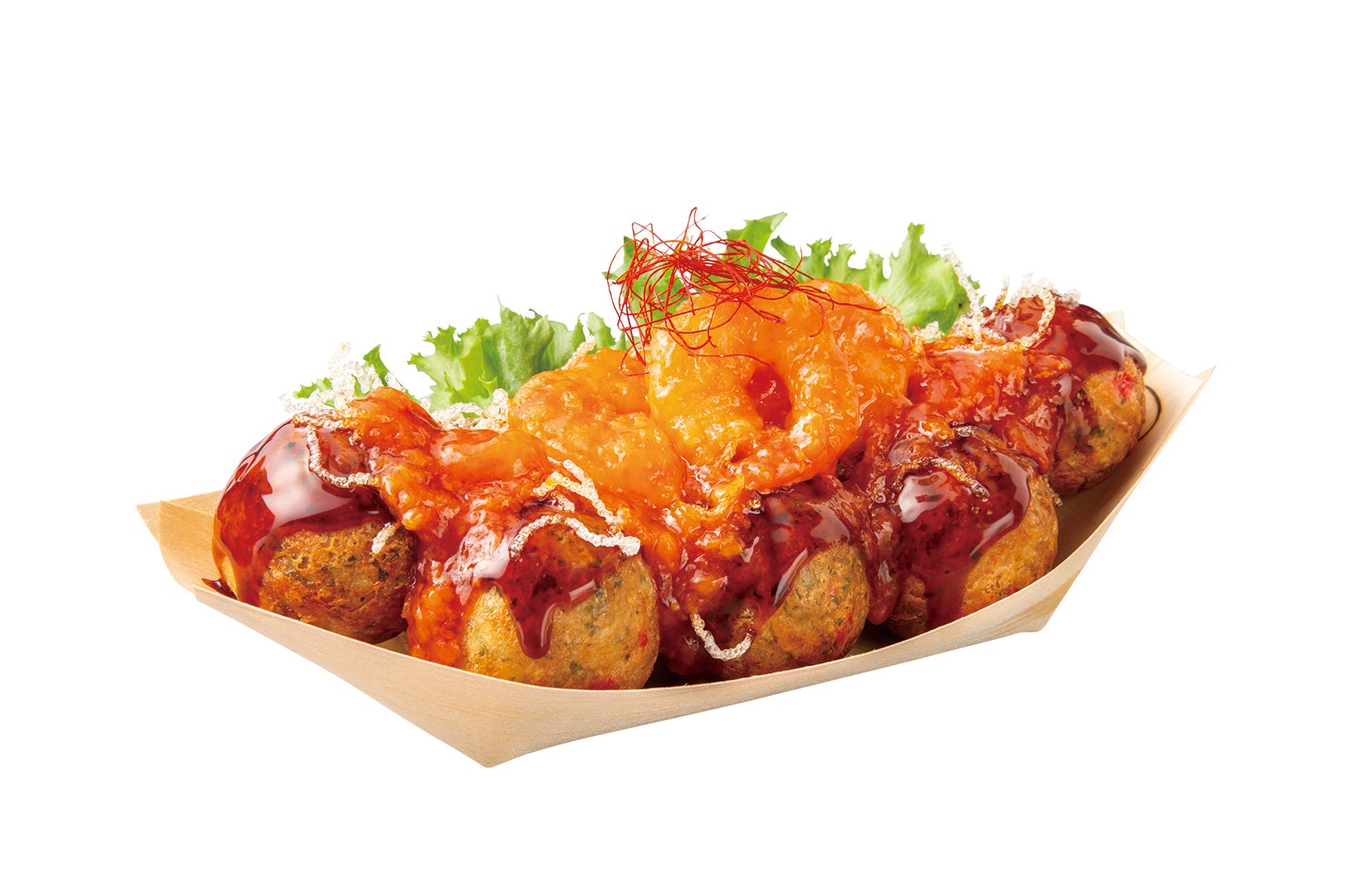 - 屋台フード、トリュフのエキスを使用したたこ焼、海老チリ、キムチのたこ焼