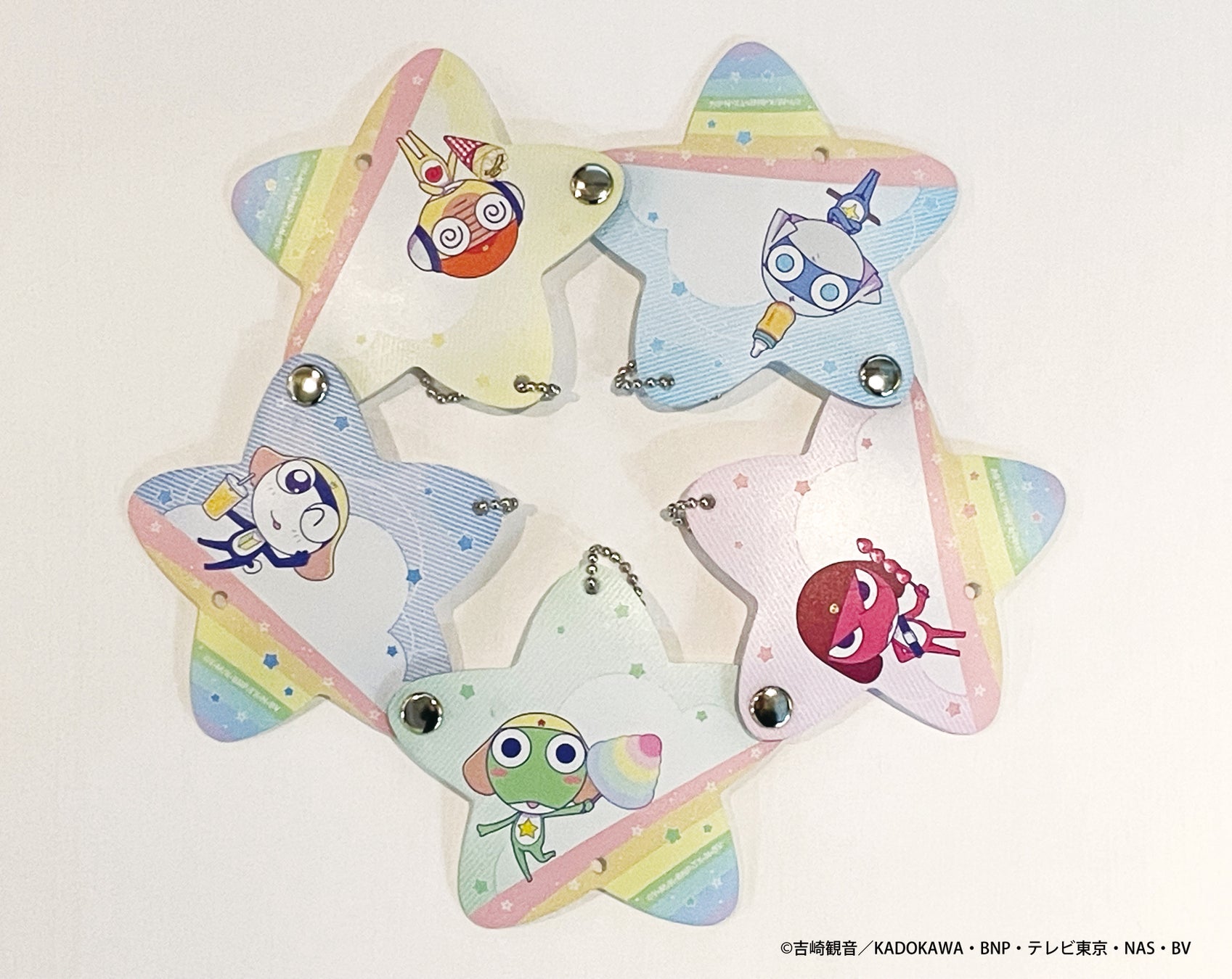 ケロロ軍曹、11キャラクターのグッズ、星形PVCコードホルダー、テイクアウトドリンクストラップ、アクリルスタンド、Tシャツ、ポストカード