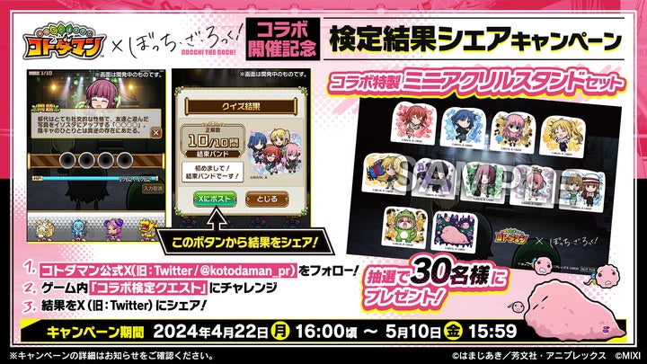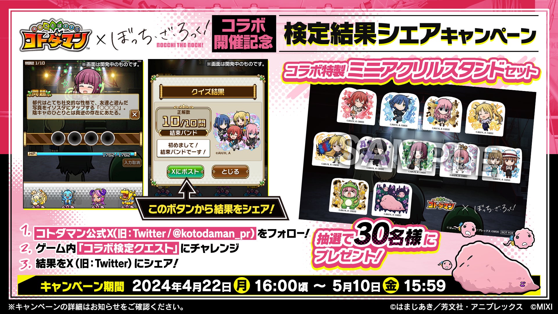 - アニメ「ぼっちざろっく!」とゲーム「コトダマン」のコラボ開催