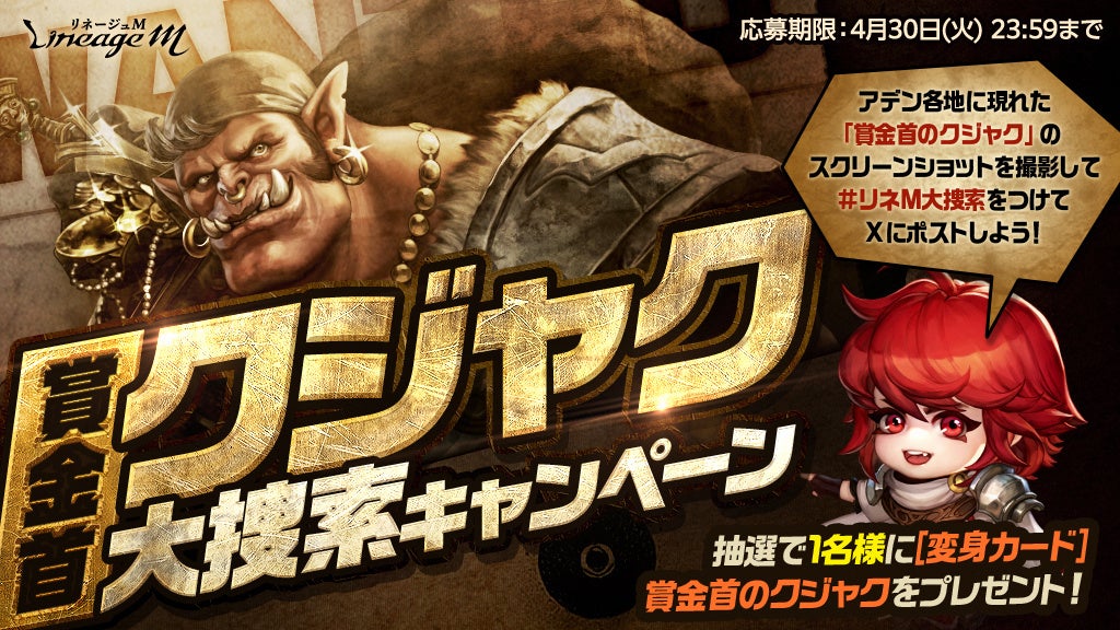 『リネージュM』新英雄級変身獲得のチャンス!賞金首クジャク討伐イベント&追従者殲滅指令同時開催!公式X連動キャンペーンも