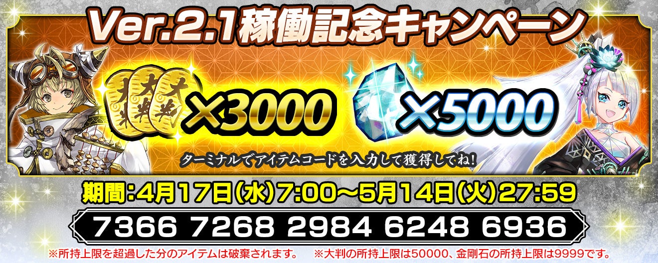 新バージョンのリリースを記念して、アイテムプレゼントキャンペーンも実施中です。