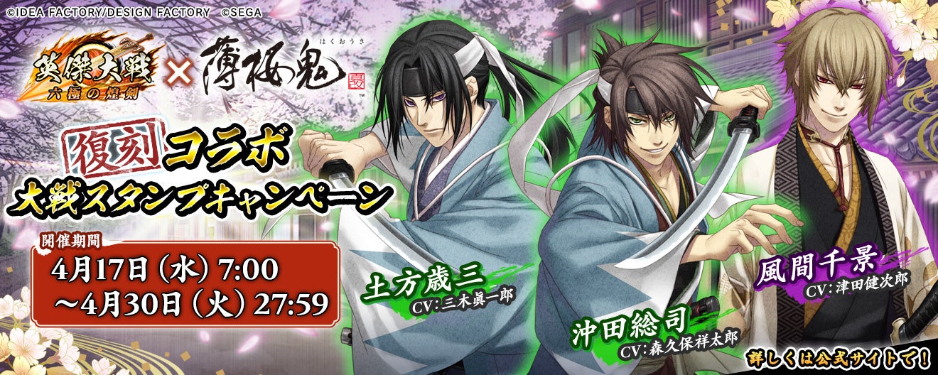 さらに、「薄桜鬼」との復刻コラボも開催されています。