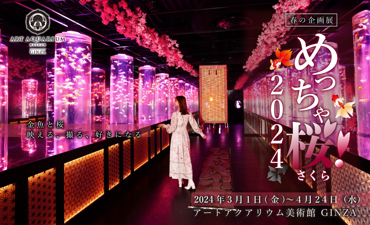 新型コロナ対策、金魚アート、四季の移ろいを楽しめる企画展、SNS映えするスポット、春の企画展「めっちゃ桜!2024」、初夏の企画展、金魚を芸術作品として表現、幻想的な世界を提供