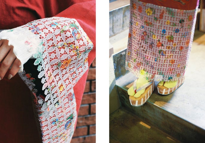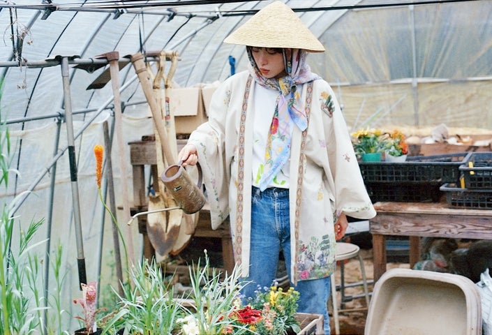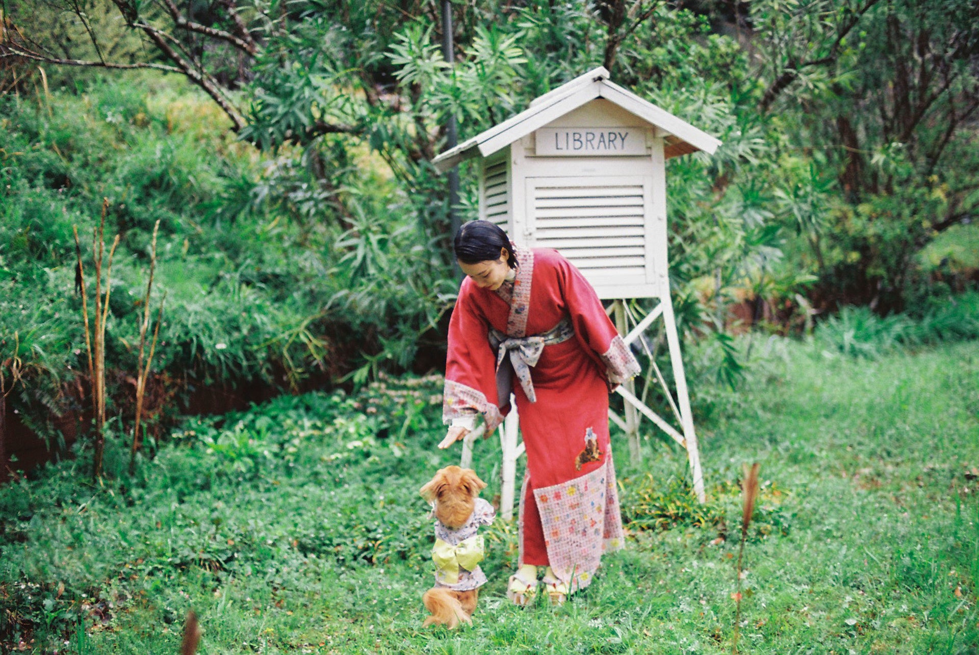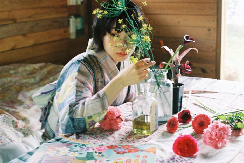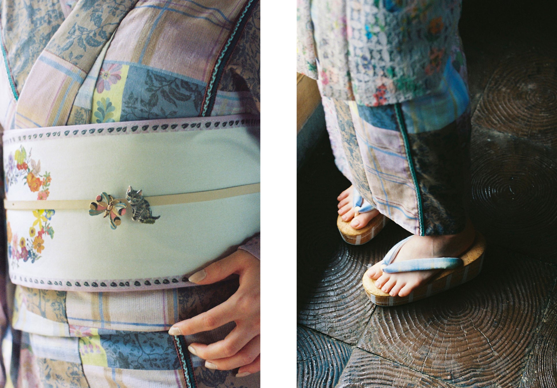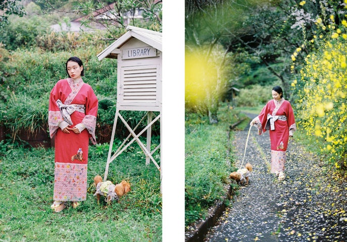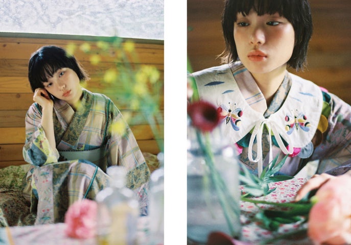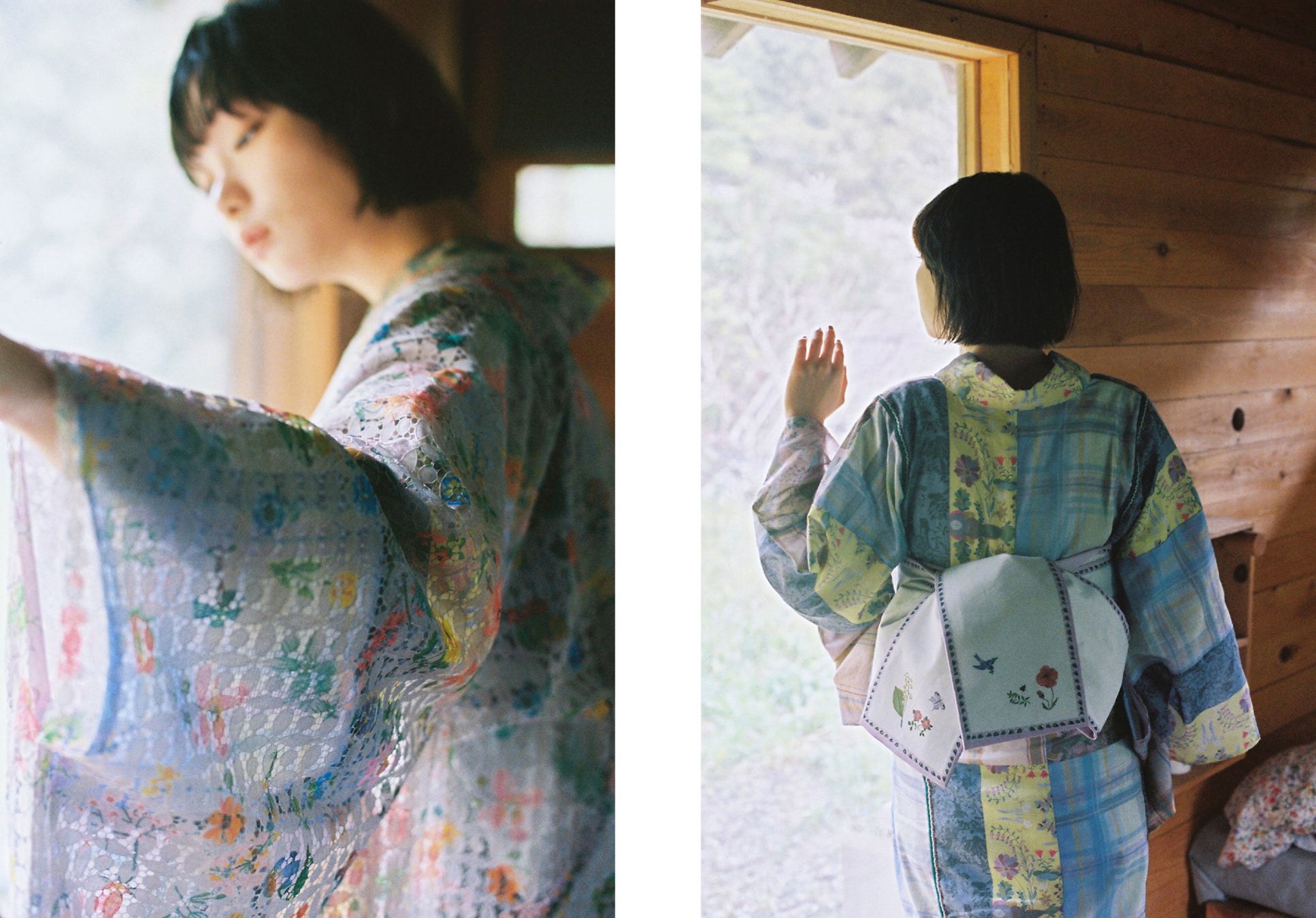 彼女のユーモラスでハッピーな世界観が、きものによってさらに深く表現されています。