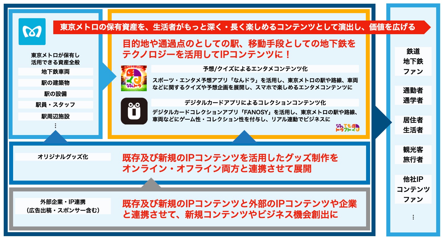デジタルカードコレクションアプリ「FANOSY」とスポーツ・エンタメ予想アプリ「なんドラ」を展開し、東京メトロの魅力をテクノロジーで再現します。