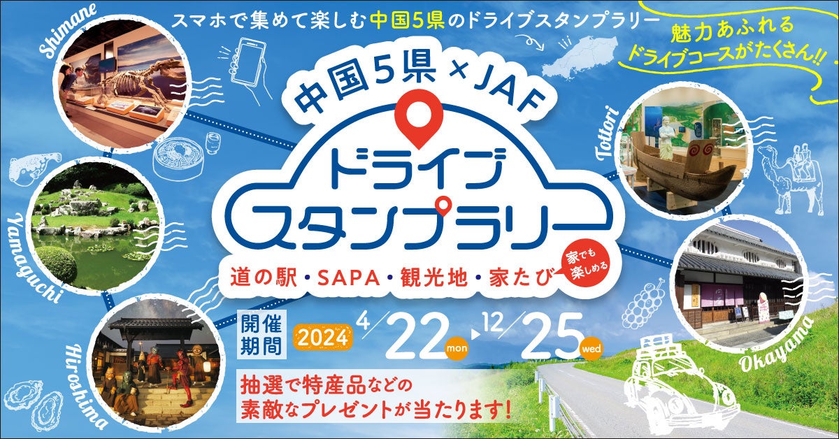 JAF主催の中国5県×JAFドライブスタンプラリー2024が開催されます。