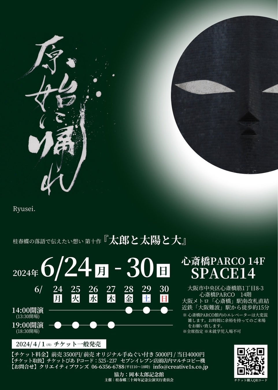 6月24日(月)から30日(日)まで、桂春蝶が心斎橋PARCOで「芸能生活30周年記念公演 落語で伝えたい想い第十作」を7日間連続で開催します。