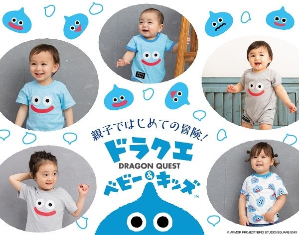 スライムフェイスデザインのフィットオールやTシャツ、新作の半袖ボディスーツなどが揃い、親子で楽しめるアイコニックなデザインで、子供たちの「ドラゴンクエスト」デビューをサポートします。