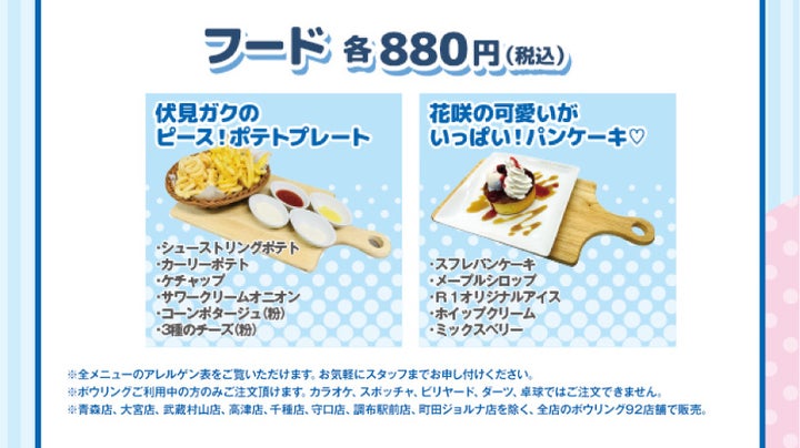 コラボメニューや特典が盛りだくさんで、ボウリングやスポッチャでコラボドリンク・フードを楽しめる他、特別料金パックも用意されています。
