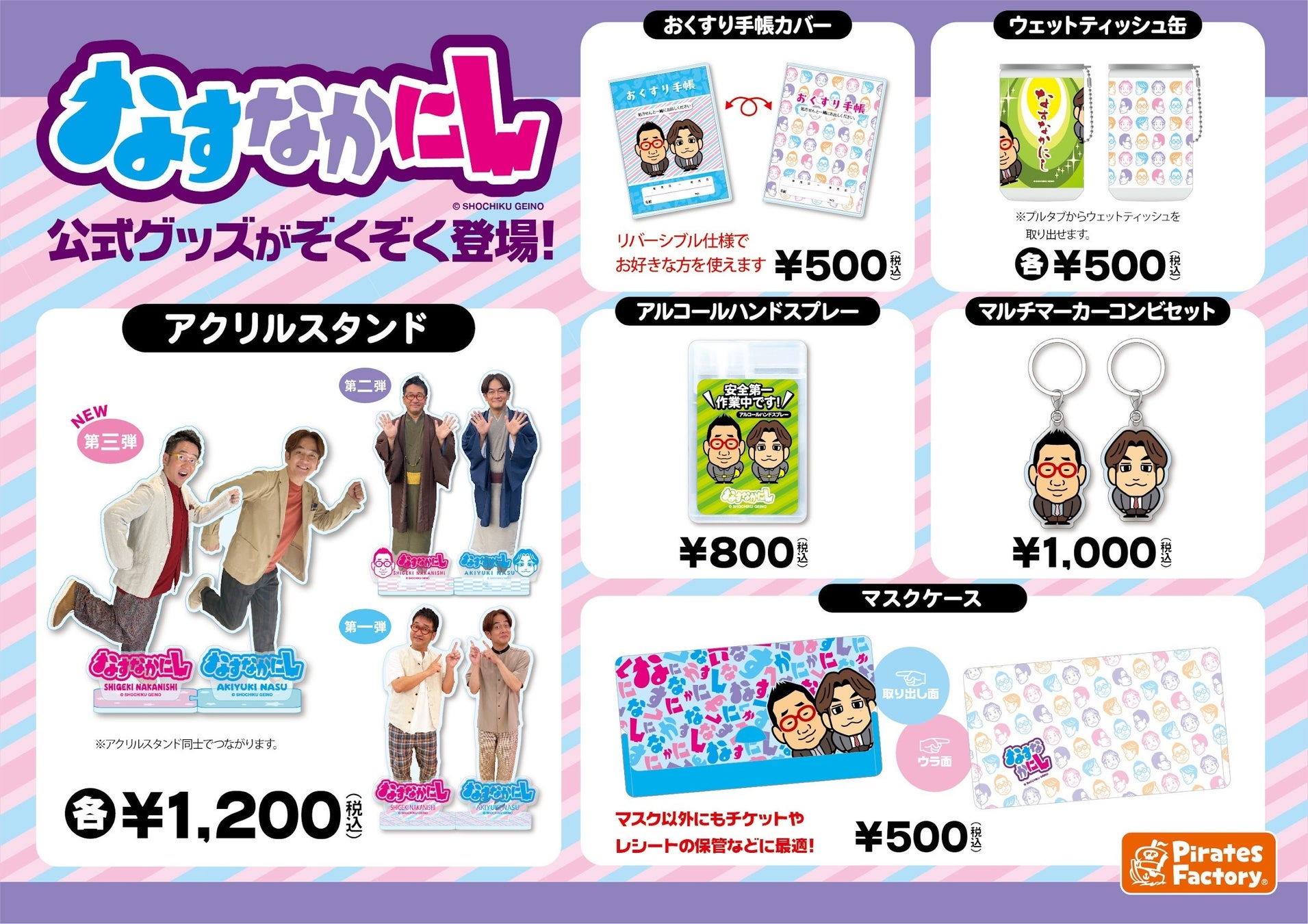 イベント当日はなすなかにしの公式グッズも販売されますが、現金のみの取り扱いとなります。