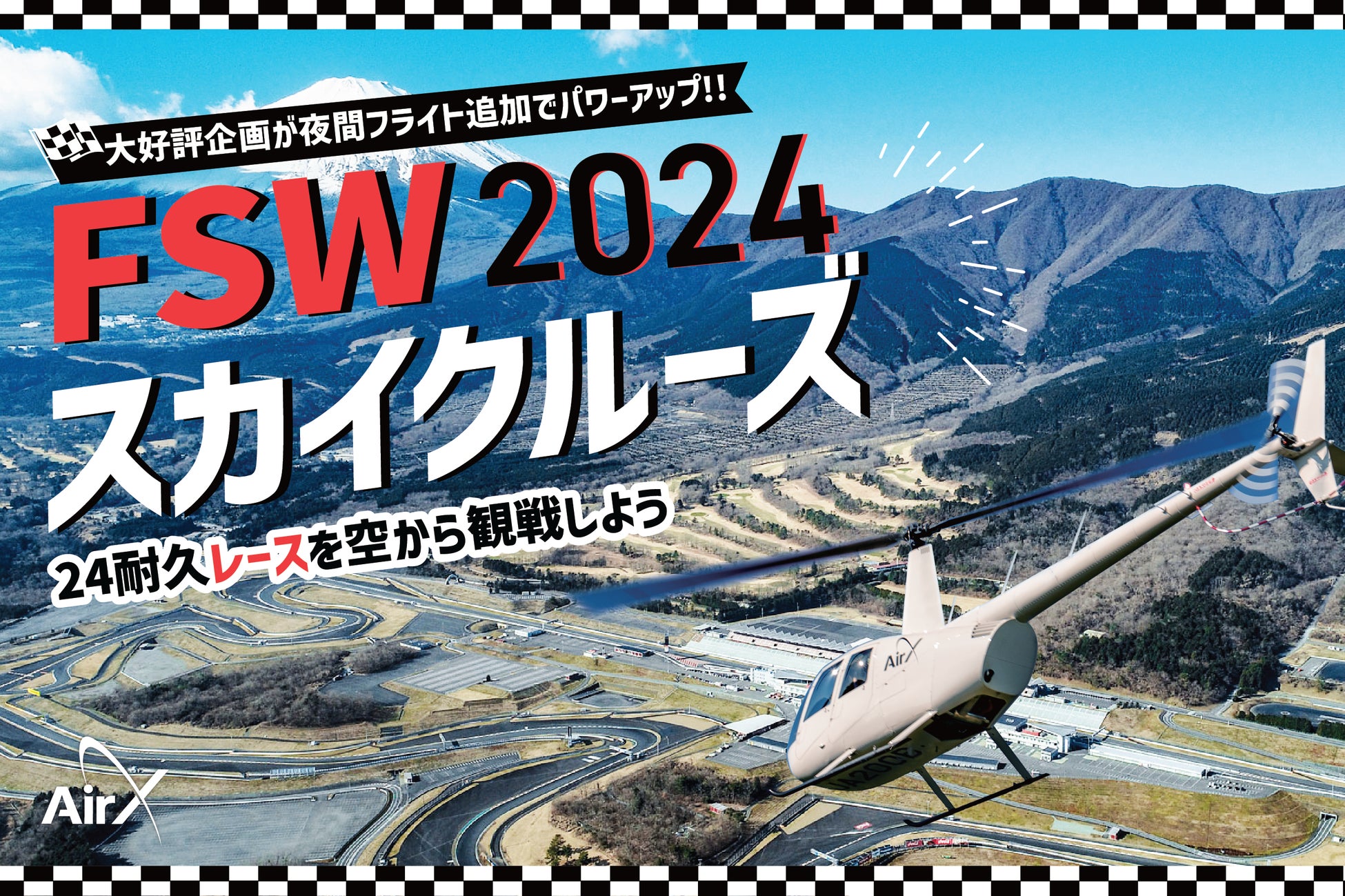 2024年のENEOSスーパー耐久シリーズ2024 Empowered by BRIDGESTONEの第2戦、富士SUPER TEC 24時間レースに合わせて、FSWスカイクルーズが5月25日(土)・26日(日)の2日間限定で開催されます。