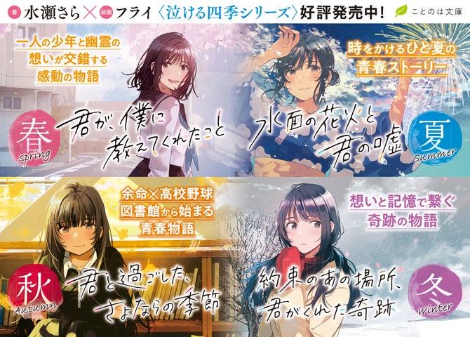 水瀬さらは青春小説の名手であり、『君が、僕に教えてくれたこと』や『水面の花火と君の嘘』なども人気です。