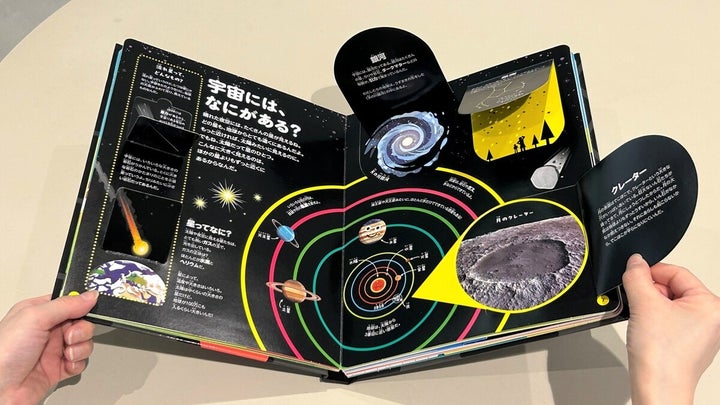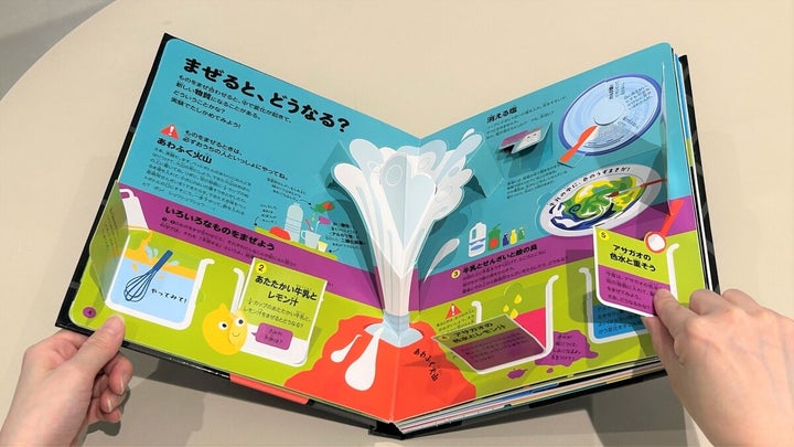 色とりどりのページには楽しい仕掛けが満載で、化学変化や天体の特徴を体験できます。