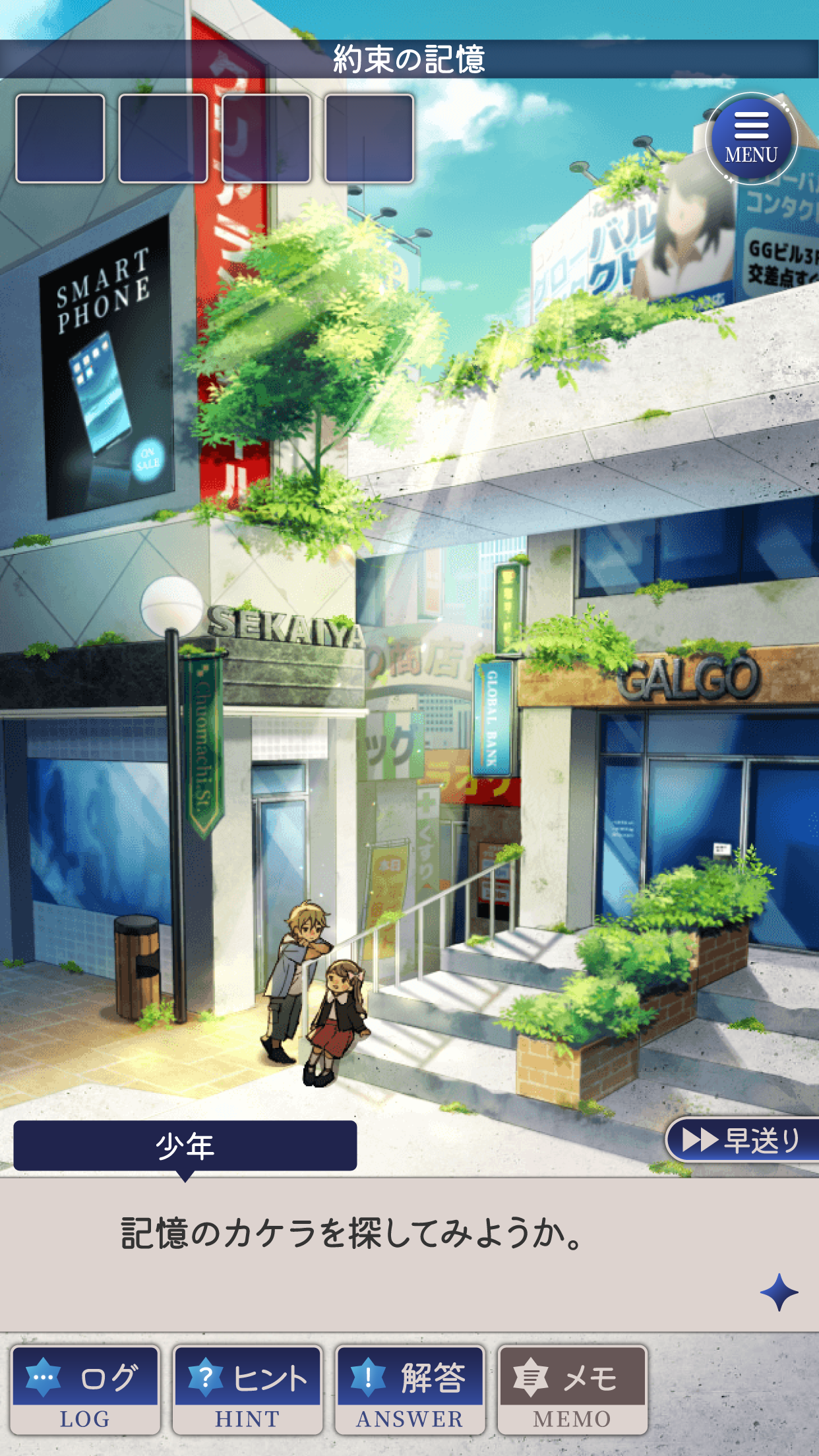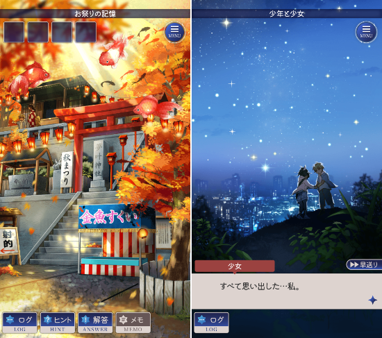 ストーリーは、記憶をなくした少女と少年が出会い、記憶のカケラを集めていくもので、全ステージ無料で遊べる。