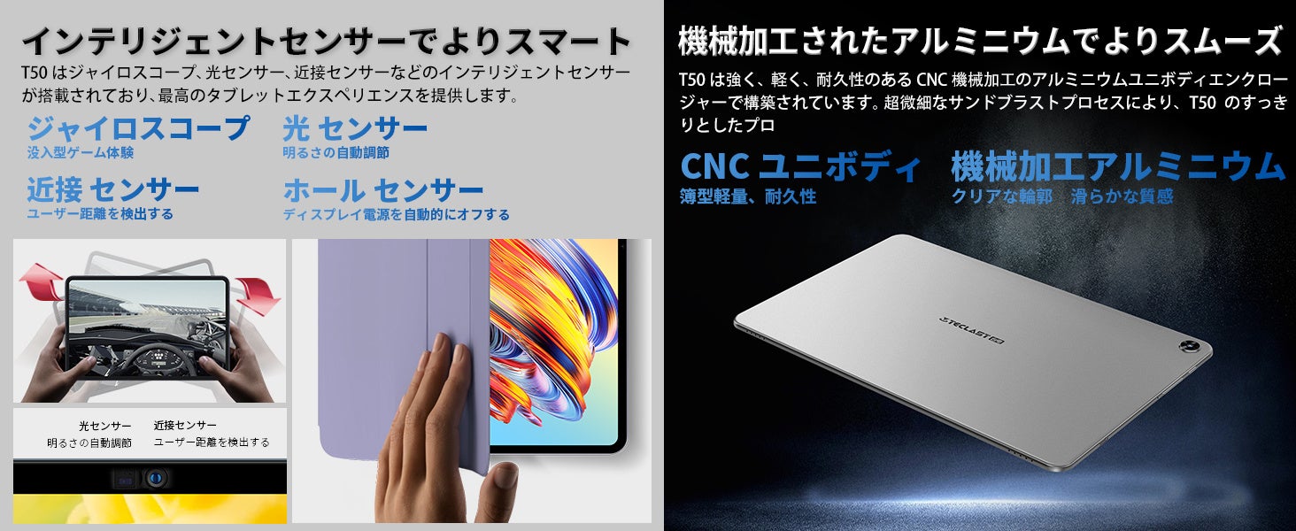 TECLAST T50タブレット PCには、11インチ、2000*1200 IPS画面、16:10アスペクト比が付属しており、あらゆる瞬間を生き生きとさせ、常にビデオの饗宴を提供します。11インチタブレットはフロントカメラとリアカメラの両方にソニーのセンサーを使用しています。 リアカメラは20MPのスタックカメラを使用しているため、暗い場所でも人生の貴重な瞬間を捉えることができます。