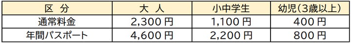 チケット料金は全て税込みで、3歳未満のお子様は無料です。