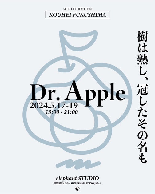 株式会社COCO Galleryは、2024年5月17日から19日まで、渋谷のelephant STUDIOで福島滉平による個展”Dr. Apple”を開催します。