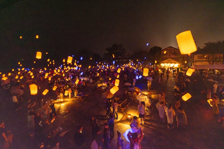 イベントは愛と平和をテーマにし、バルーンランタンやメッセージ花火で感動的な夜景を演出します。