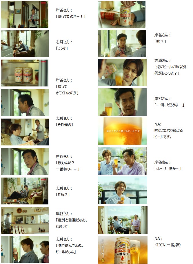 最後に、岸谷さんと志尊さんが「一番搾り」を選ぶ理由や家族とのビールの時間について語っています。