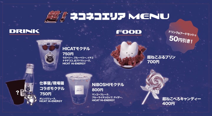 会場では特製ドリンクやスイーツが販売され、HICATやNiBOSHIのオリジナルグッズも展示されます。