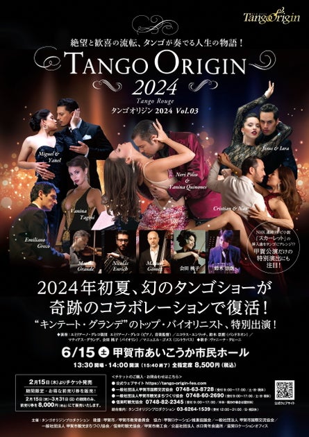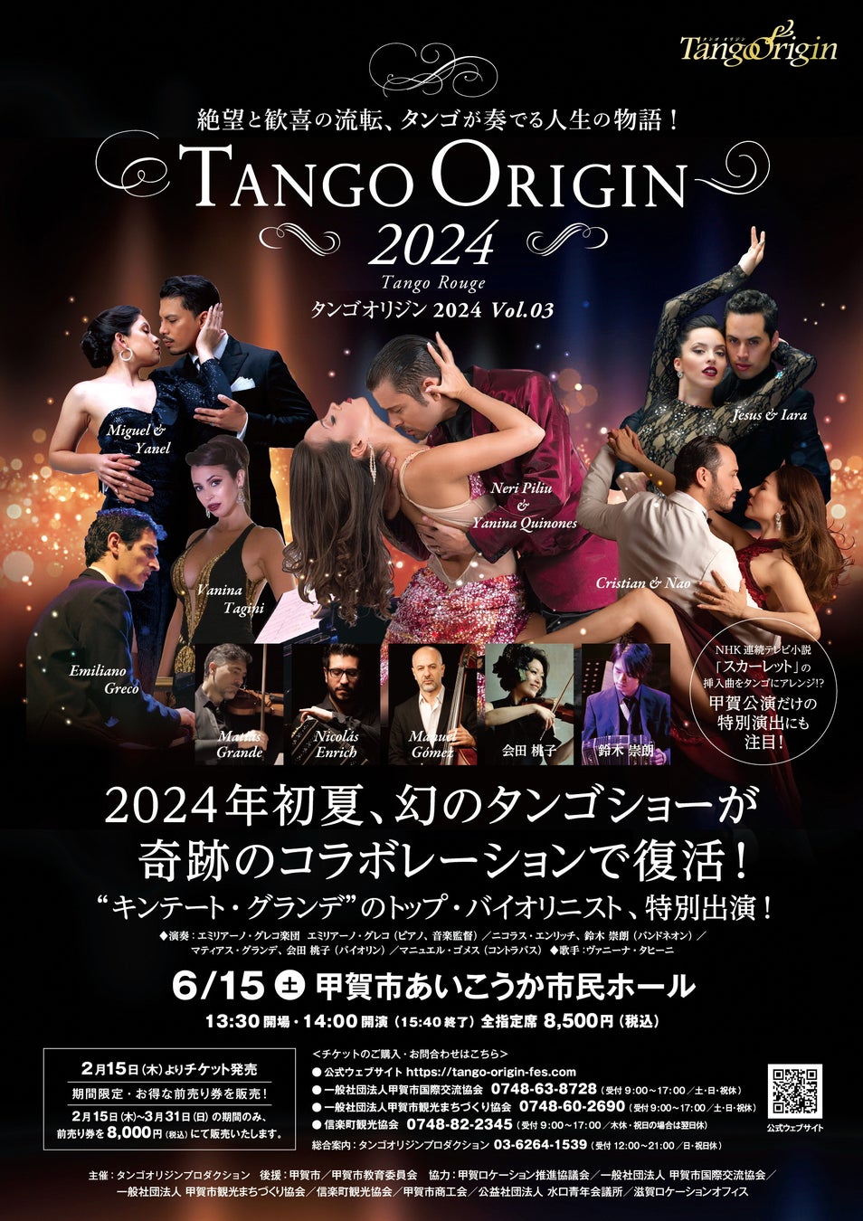 株式会社タンゴオリジンプロダクションは、6月15日に滋賀県甲賀市でタンゴショー「TANGO ORIGIN 2024-Tango Rouge-」を開催します。