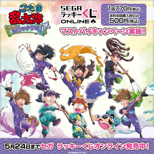 セガのラッキーくじオンライン「忍たま乱太郎 みんなでお絵かき合戦!の段 弐」では、乱太郎やきり丸、しんべヱなどのセガ限定イラストが描かれたくじが登場しています。
