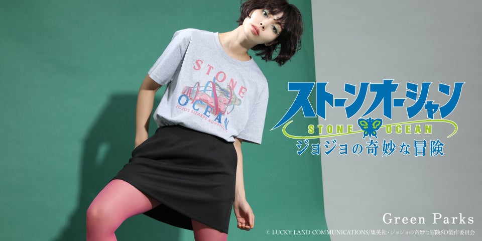 Green Parksがアニメ『ジョジョの奇妙な冒険 ストーンオーシャン』とコラボし、大人気漫画のアニメ版第6部をテーマにしたオリジナルTシャツ全6型を展開します。