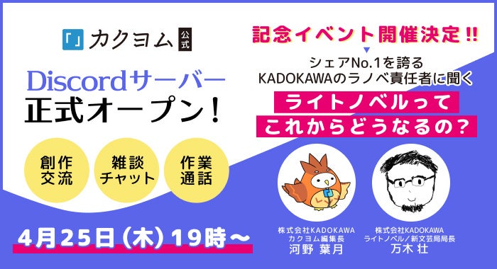 4月19日に公式Discordサーバーを開設したカクヨム。