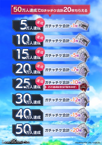 - 事前登録者数25万人達成でガチャチケやSBTプレゼント