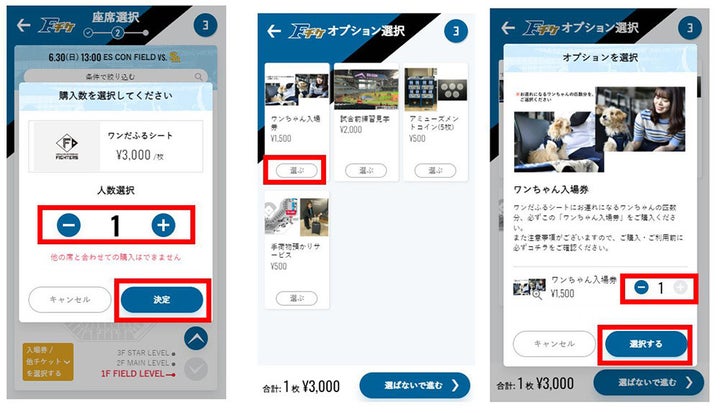 特別エリアの「ワンだふるシート」では愛犬と一緒に試合を楽しむことができます。