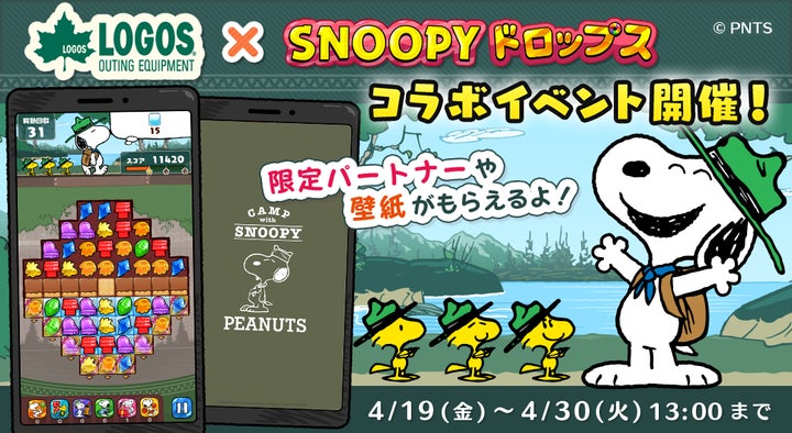 スヌーピードロップスとロゴスのコラボイベントが開催中!4月19日から30日まで、限定パートナーや壁紙が手に入ります。