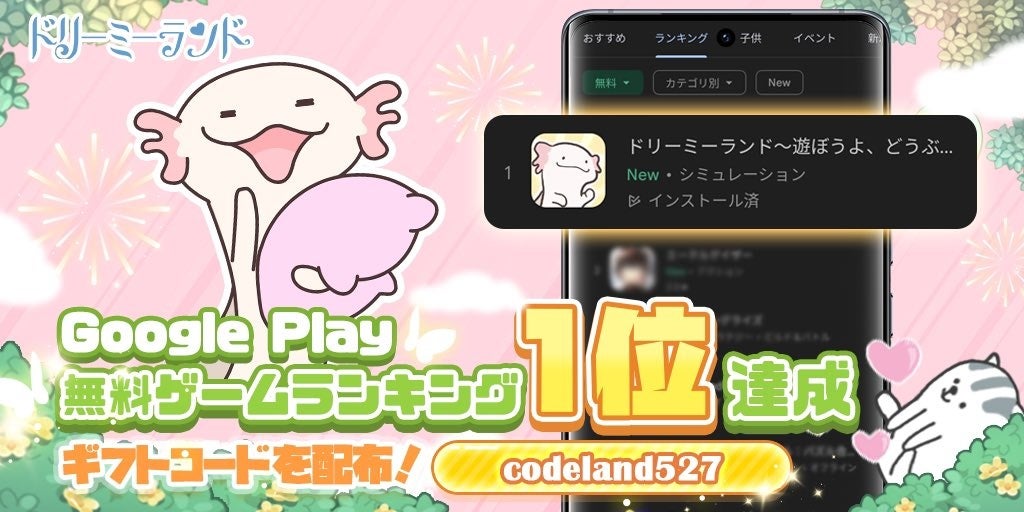 癒し系箱庭放置シミュレーションモバイルゲーム「ドリーミーランド~遊ぼうよ、どうぶつの仲間たち~(ドリラン)」累計ダウンロード数60万突破!