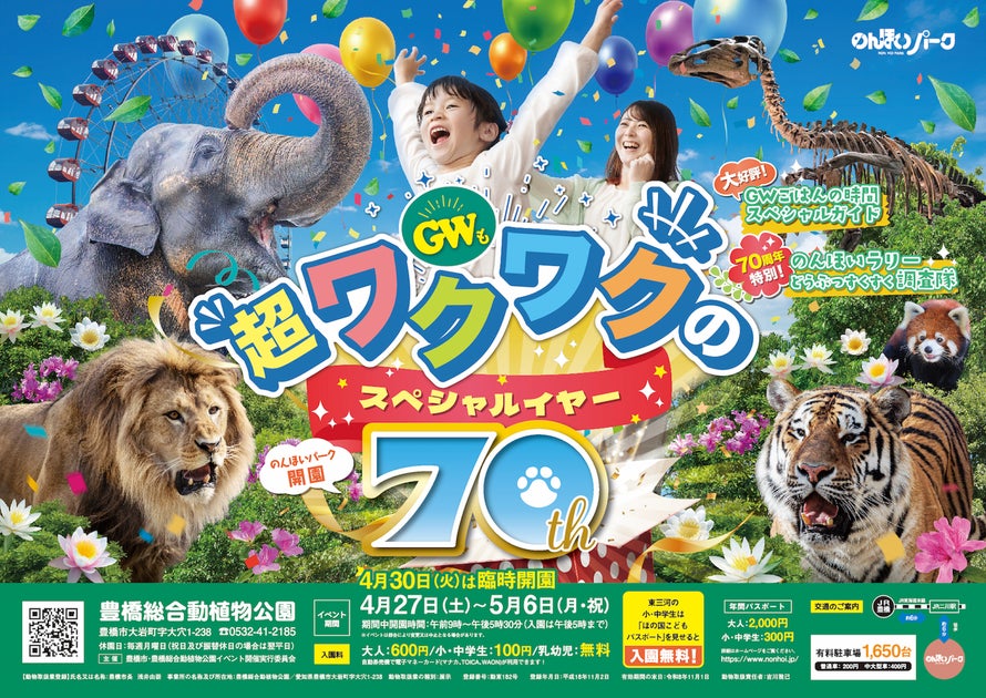 のんほいパークが70周年を迎える今年のGW期間は、特別イベントが盛りだくさんです。